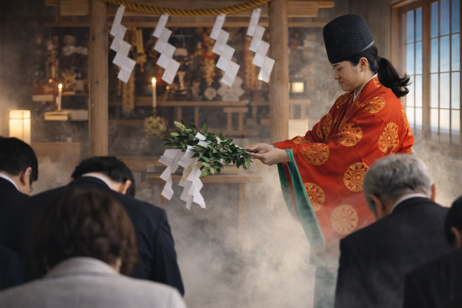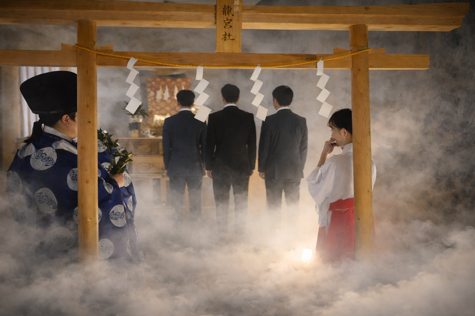 神さまの御前に進み、祝詞のもとにお名前と願いを奉げ、御神徳をもってお守りいただく、神聖な神事です。