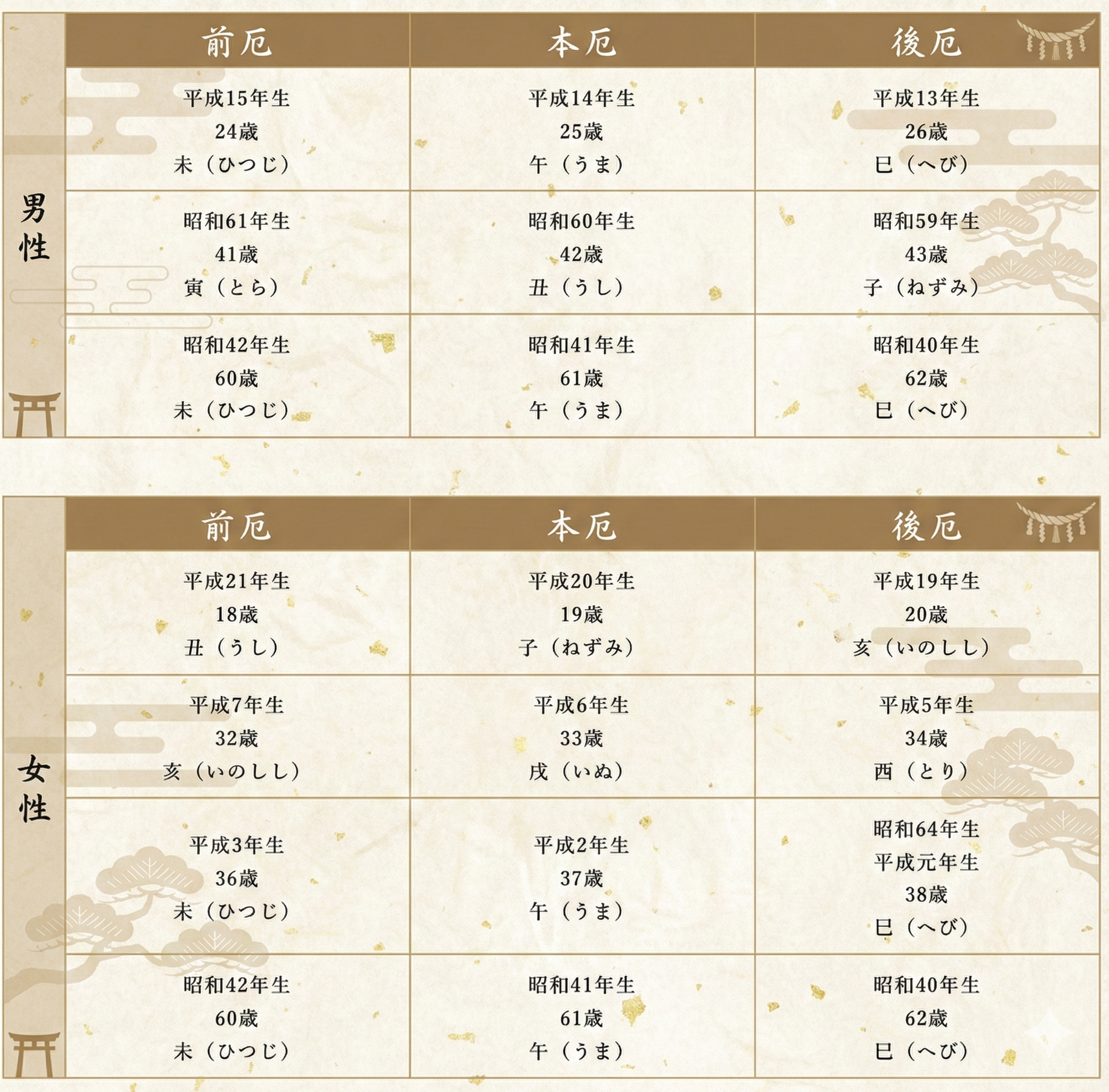 人の一生の中で、災いが起こりやすい年齢を「厄年」といい、古くより身を慎み、心身を正し、穏やかに過ごすべき年として大切にされてきました。