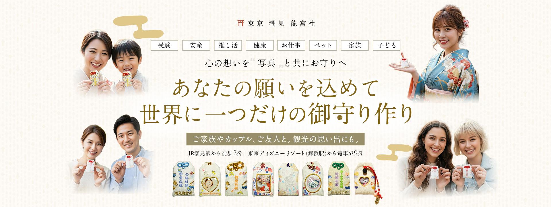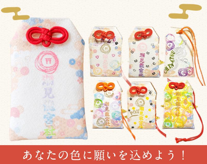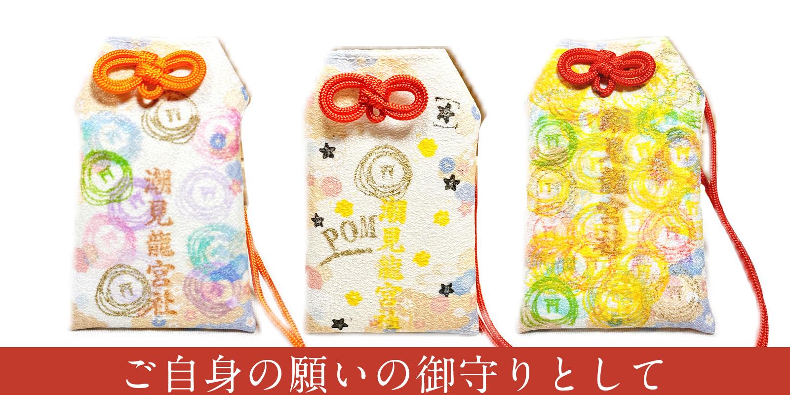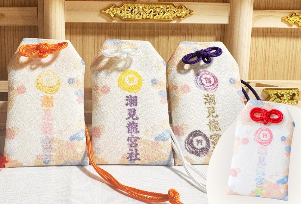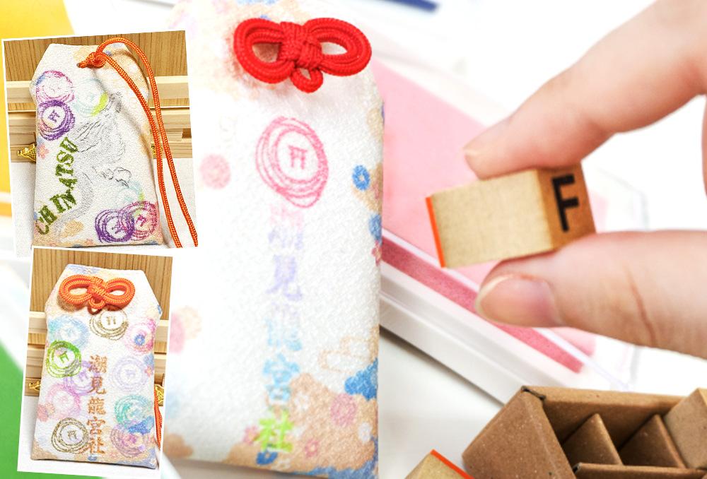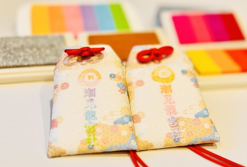 潮見 龍宮社の手作り御守りは、御守り袋に好きな色・好きなスタンプを押印してカスタマイズ!さらに御守りの中にお気に入りの写真を入れ、外から見える“窓付き”のデザインです。