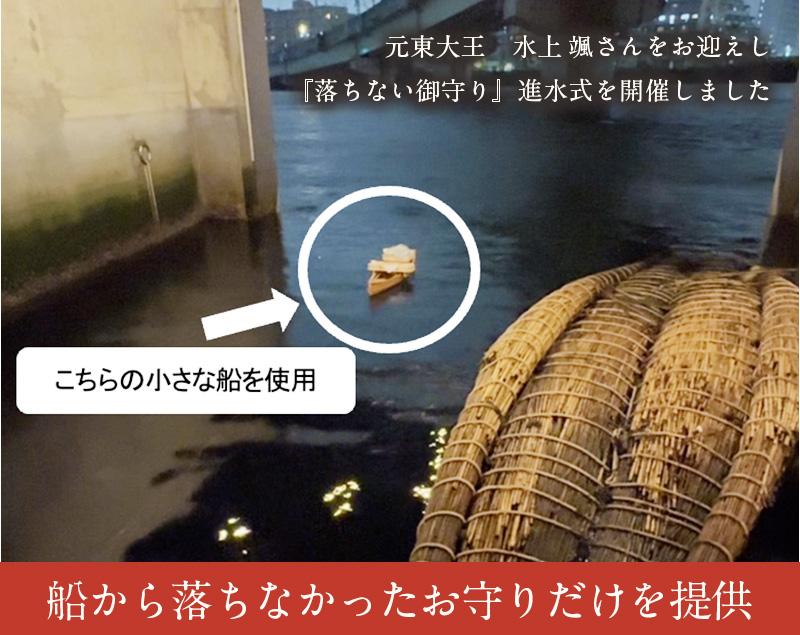 多くの御守りが途中で落ちてしまう中、最後まで船に残った「落ちなかった御守り」だけを授与しています。