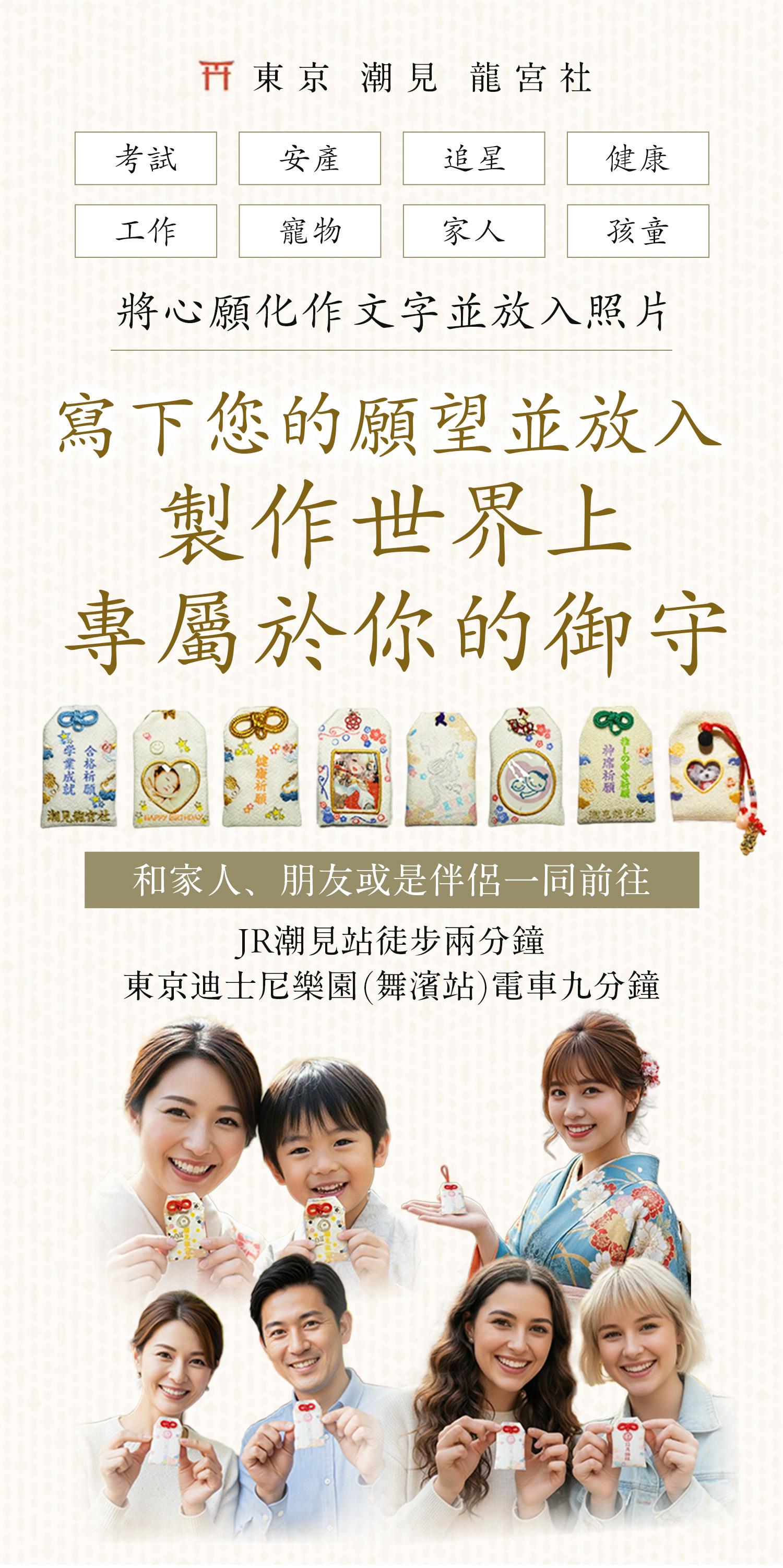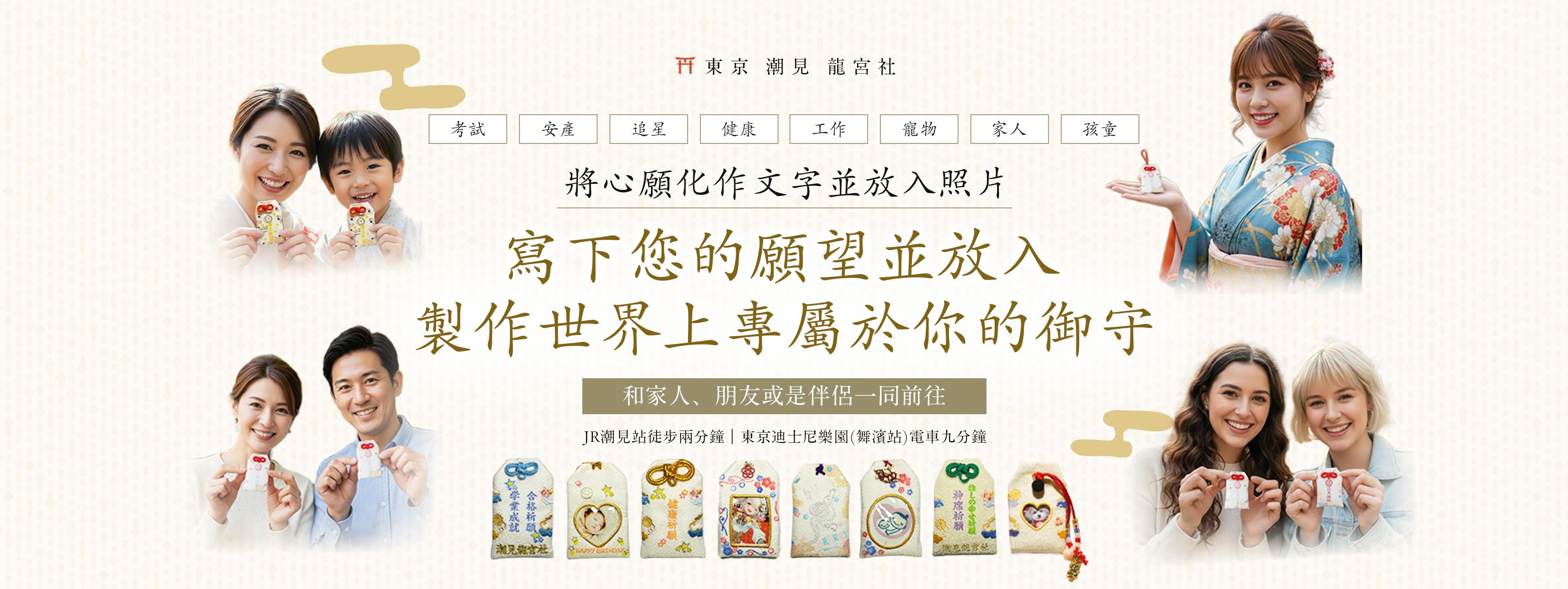 潮見 龍宮社的御守製作體驗可以選擇自己喜歡的御守外型和自己喜歡的印章!而且還能夠在御守裡面放入自己喜歡的照片。